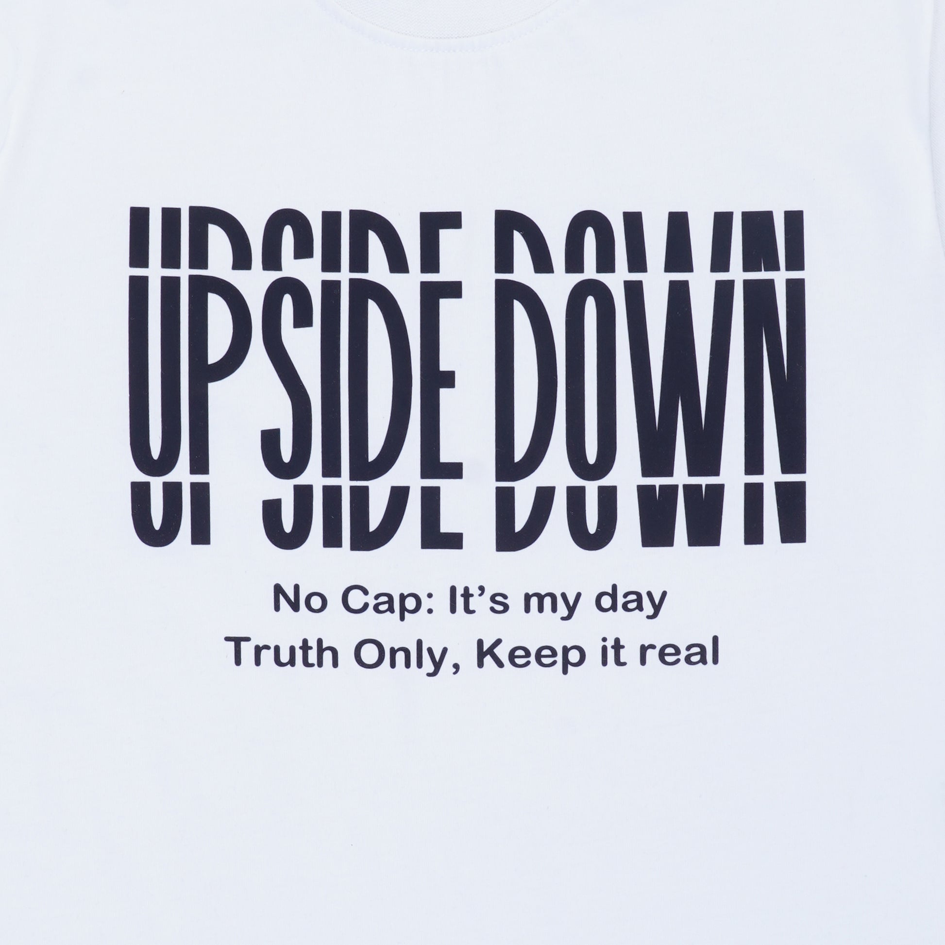 - Graphic: Unique upside-down print for a bold statement